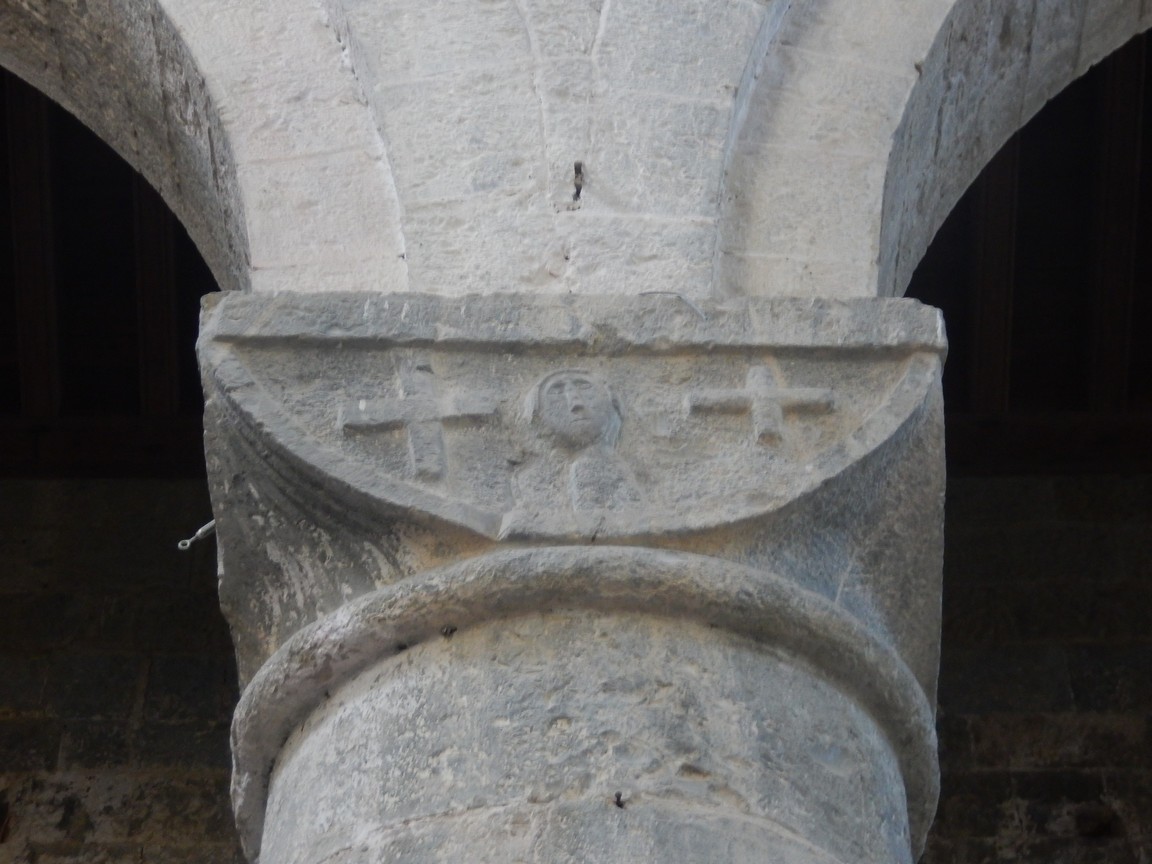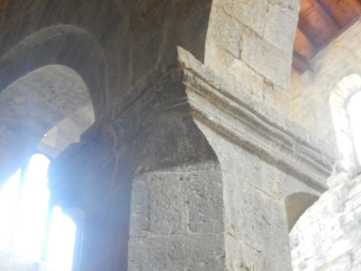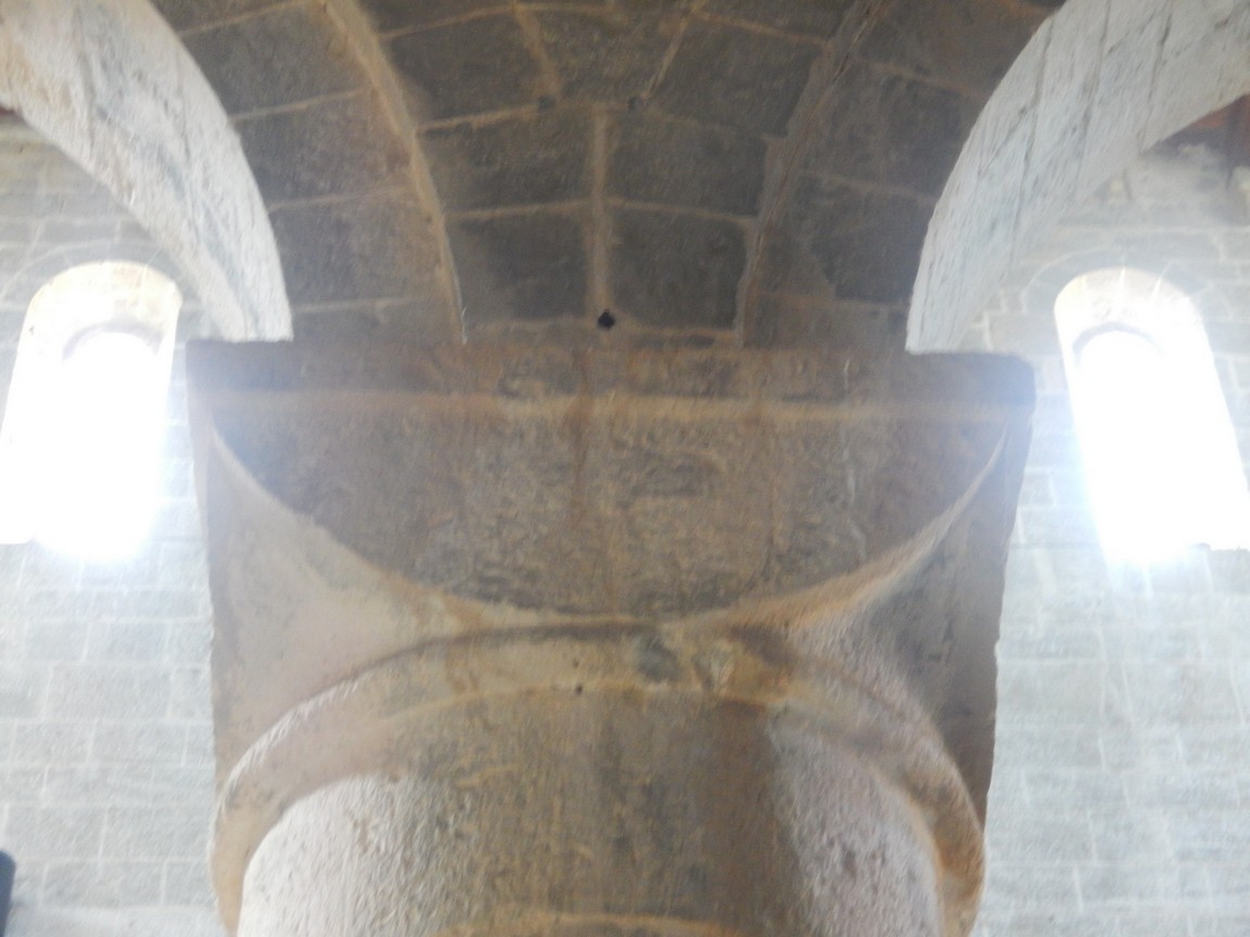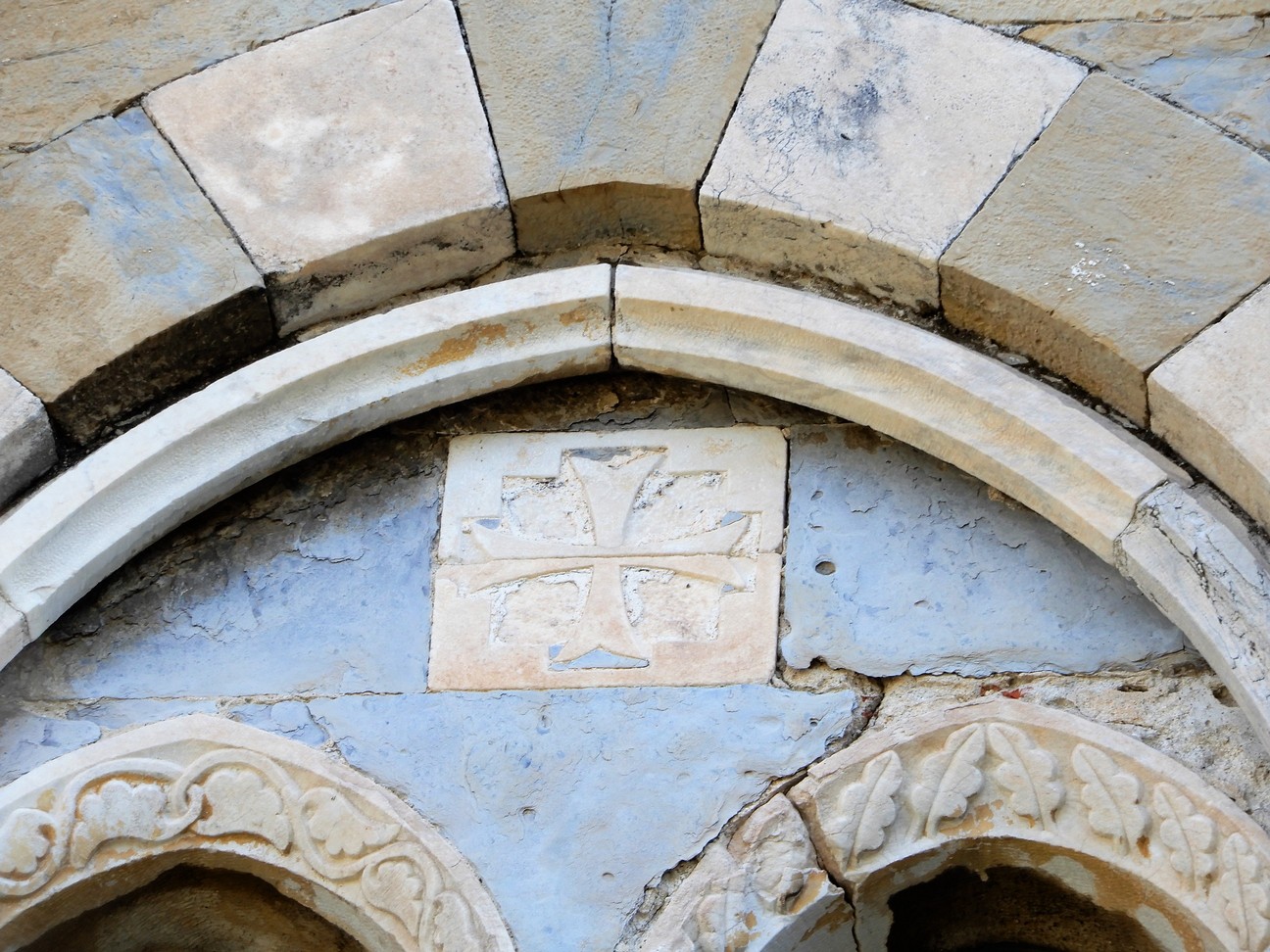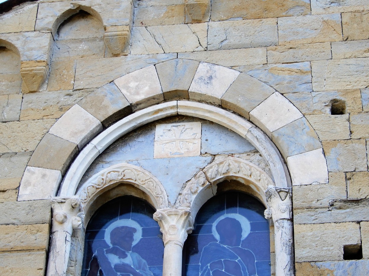 Gli archetti delle monofore delle absidi, ad eccezione di quello dell'abside della navata sinistra, sono monolitici ma, curiosamente, sono stati graffiti in modo da simulare l'esistenza di vari conci.
