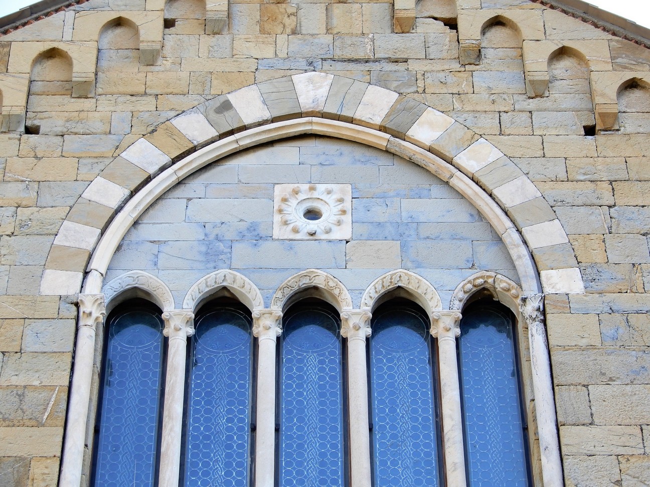 Il ritmo cromatico così ottenuto, caratteristico del gotico ligure, è ripetuto anche negli archi delle altre finestre della facciata.
