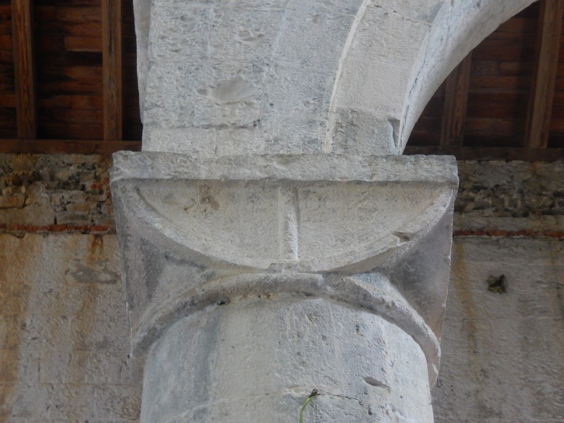 Tali lesene sono unite inferiormente da una modanatura orizzontale, che serve a chiudere gli spazi così definiti ed a creare una continuità nell'effetto chiaroscurale ottenuto, al fine di marcare maggiormente l'azione di collegamento tra la serie superiore e la serie inferiore di archetti.